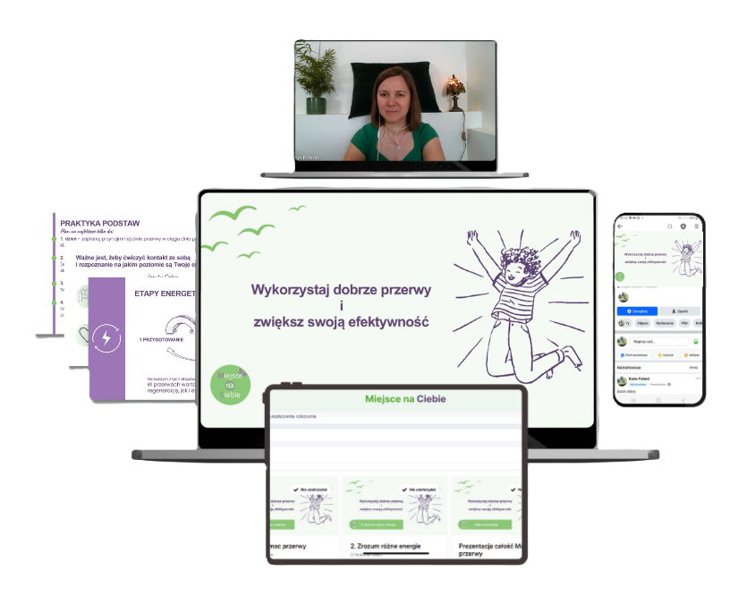 Dzięki kursowi „Moc przerwy” nauczysz się jak swoją przerwę zamienić w ekspresową regenerację, aby móc z łatwością realizować swoje cele.
